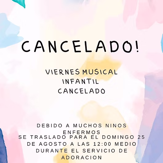 We rescheduled our musical concert for children, here more details.. iWe look forward to seeing you at our musical concert for children on Sunday, August 25th at 12:MD!